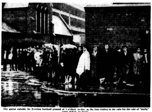 Everton have voluntarily decided on a crowd limit of 73,000 for the "derby" with Liverpool at Goodison Park on September 22, and already it seems certain that this all-ticket match will be a complete sell-out. Indeed, supporters were taken so unexpectedly by the announcement that all stand and paddock tickets had been disposed of last week, that now there is a frantic demand by people, who must realise that if they are to see the game at all they must stand. This ceiling of course, is well below thee existing ground record, which is 78,299, set up when Liverpool were visitors on September 18, 1948, while as recently as December 27, 1960 there were 75,667 for the match with Burnley. Secretary Bill Dickinson, told me last night that the board had arrived at the figure on their initiative, it not being considered necessary to consult the police. While nobody goes to a match at which 73,000 spectators are expected, hoping for any real degree of comfort, supporters of both clubs ask only one thing- to be included among the number, for what already promises to be a memorable clash. Already this season, for the first home game with Manchester United, 69,501 spectators paid for admission, without complaint either of the fare or the comfort.