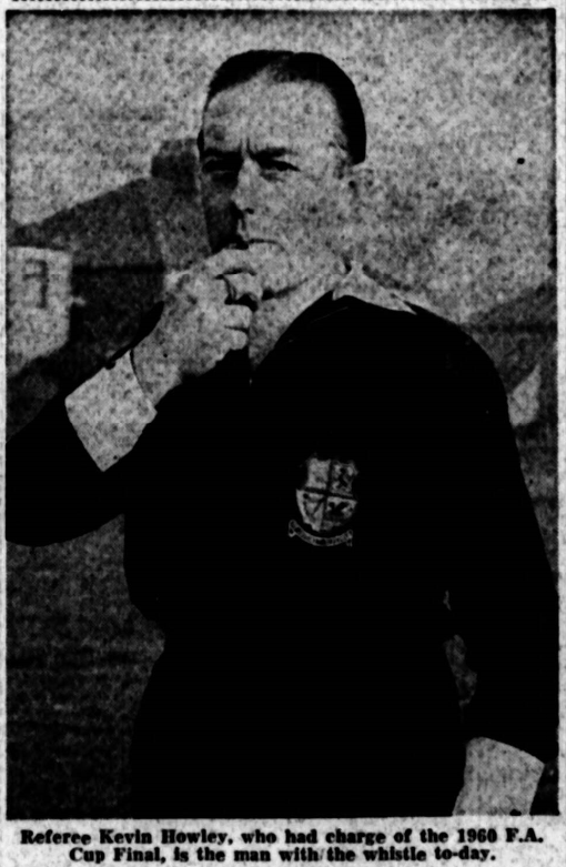 That is the way of it on Saturday for the referee of the Derby game, Kevin Howley, of Middlesbrough. He told me to-day: "I'll find it difficult this week to appreciate that I'm of o football match. There was never any doubt that I had a match on my hands at Everson. What an atmosphere! What a scene! I wish I had a game like it every week." The man in charge at Goodison Park received a fee of only £7 7s plus expenses: Everton players two have wage packets of something considerably over £100 each for their work. When Furnell was injured going down to the feet of a forward Referee Howley observed to Roy Vernon: "I would have thought twice before I would have dared to do that." Vernon's comment: "Maybe. but the money's good " Mr. Howley is convinced that he was right to disallow Vernon's first-minute score hits version of the incident was that in harassing Furnell. Vernon, accidentally or otherwise, touched the goalkeeper's elbow and caused him to lose possession. Mr. Howley says that Furnell's hand injury came later when he was scrambling to the ball to try to present Vernon from shooting. The referee was full of praise for the players. "In view of the tremendous atmosphere they did extraordinarily well and made my job much easier than it would have been in other circumstances." he said. Would he get the return at Anfield? He thought not; the same referee does not automatically get the appointment. The league would probably give some other official the honour, and fun, of the second meeting.
