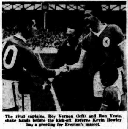 The players had come on, traditionally in pairs (to the accompaniment of the Z cars theme song). They went off almost two-by -two to tumultuous applause and some handshakes. If there had been eleven A'Courts faced by eleven Mick Meagans, Mt. Howley could have stayed at home. I said if… Liverpool played above themselves; if they had not they could not have snatched a point: I think Everton were probably surprised their opponents played so well. For half an hour Everton had the game in their grip; then Harris injured himself and was forced on to the wing. From that moment Liverpool came into the game with their challenge. The second-half was their best and the final twenty minutes produced the most sustained football from both sides. For me Byrne was the day's hero. And one with a bloodied nose. He has never played better or more determinedly. Callaghan, too, was first-class an eye-opening case of another local boy making good. Milne, whose hand was accidentally trodden on, had some great moments; Hunt excused all defensive work, had his best game of the season. Lewis under the thumb of Labone, for the most part "escaped" twice to score and to provide the ammunition for Hunt. I have seen Young play better—and Vernon. They moved the hall as if it were a hot potato. Maybe they were right to do so in face of such stern tackling. Meagan often failed to match A'Court's speed—that was where danger to Everton lay: Bingham and Stevens, a most valuable wing gave Leishman and Moran a thorough testing. Until his Injury Harris was playing like an England half-back and Melia, all through, got close to his form as a potential England inside-forward. Our thanks our due to twenty-two players for making this such a rumbustious, exciting and enthralling, afternoon's watching with a result, as I have said, just- but only just! The breaks, I thought, went Liverpool's way.