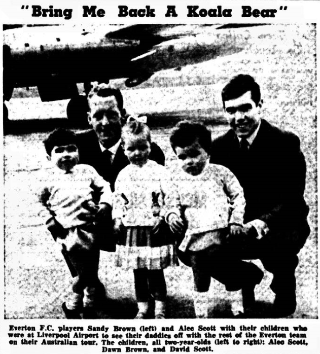 Everton are also prepared to consider offers for several of the retained players. Two, of course, are Alex Young and George Sharples, the wing half from Ellesmere Port. Young’s request for a transfer was granted about a fortnight ago and Sharples has bene open to offer for several months. Mr. Catterick said that no approach had yet been made for Young. In Sydney to-day, Everton trained for an hour in preparation for their opening tour match, against New South Wales, in Sydney on Saturday. A small crowd watched the practice session.