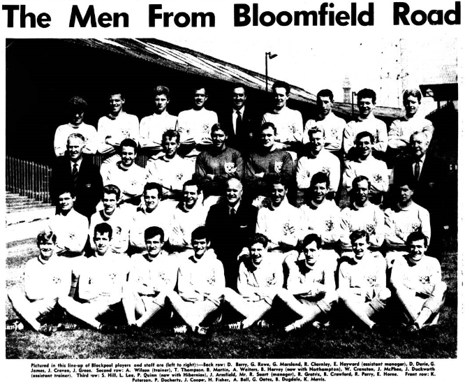 To have two England men in their defence-goalkeeper Waiters and full-back Jimmy Armfield –gives Blackpool the edge over most of their rivals defensively. At left half the one time Tranmere Rovers inside forward. John Green, who was sought by Liverpool before Blackpool took him, is making a success in a new sphere. Young Alan Ball, at inside right, is one of the smallest but best prospects in the game. He comes from the Farnworth area which has produced any number of good things for League clubs including the old Albion and England half back Tom Magee
