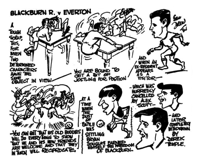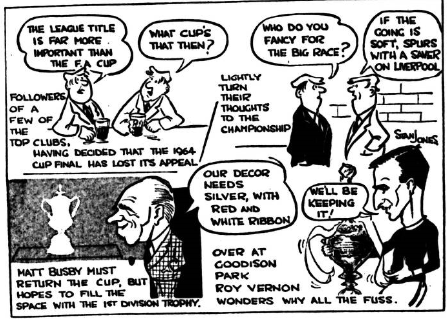 “I wonder why there should be such bitter hostility to Everton in the National Press and some of the League clubs since they won the championship last year. The winning of the championship, plus the best average gates in the country have obviously aroused the green eye of jealousy…because both Tottenham and Manchester United have spent more money on players and they are not criticised to same extent. First Tottenham, then Chelsea and now Joe Mercer, of all people, have tried to get Everton in lumber.