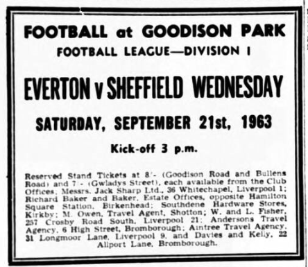 While most people are prepared to fine Arrowsmith as Liverpool’s centre forward, Mr. Shankly has introduced some speculation by linking Phil Ferns with Tom Moran at left back. In the four senior games he has played this season Ferns has shown a decided advance in maturity and he dropped out of the sides, not because of any dissatisfaction with his play, but rather because Stevenson must be just about one of the most difficult left halves in the game to depose. Ferns had two outings at right back last season, without being hailed as the heaven-sent answer to prolonged prayer, but that was last season, and Ferns, in his new frame of mind, could be a very different proposition. In pondering the problem, Mr. Shankly no doubt recognises the speed which Alex Scott can bring to hear on Everton’s right wing and asks himself, will ferns be better able to cope with such pace than Moran? On the answer he supplies to the query will depend whether or not Ferns like Peter Thompson, is given his “derby” baptism. Ask me to name the winner of this, the eighty-ninth League clash between the sides, and in honesty I can only take refuge in the solution which was applied to the last two meetings, when both ended in drawn games. The teams appear as well matched now as ever they were, for if I were to admit to acknowledging some sneaking suggestion of the finesse of fine attacking advantage in Everton’s favour, it is promptly cancelled out by a faith in Liverpool’s defence. Roger Hunt generally enjoys himself against Everton, and perhaps that is why Tony Kay remains in his normal left half position, instead of accommodating Harris by moving over.