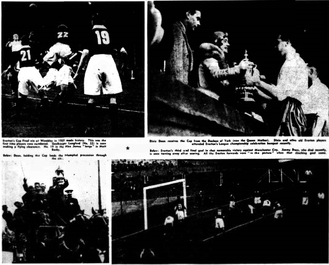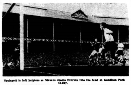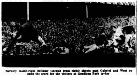 Everton lost after continually attacking in the first half when Smith in the Bolton goal saved terrific drives from Morrissey and Hill. Against the run of the play Taylor scored for Bolton on half-time. After the interval Bolton improved and Butler scored three quick goals. A shot from Sharples, Everton’s right half was kicked off the line by left back Golden with Smith out of goal.