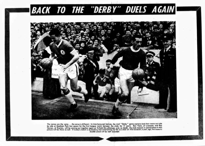 The game as played here for nearly hundred years now is immeasurably more watchable than safety first stuff which passes to soccer on the Continental. The trouble is that rewards for players have become so great club matches, Internationally have become almost pitched battles even our “Derby” that enough at in the past will never deteriorated to this point. Liverpool named 13 with Moran or Ferns as alternatives for the left-back position and St. John and Arrowsmith for the centre-forward place. There are good hopes that St. John will be fit. If he isn’t Manager Shankly will put the local boy in with confidence. He won’t let the side down. From the days when I first saw him in the Central League side Arrowsmith always impressed me as a youngster who would make it.”