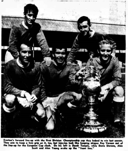 I know many fans were disappointed with our performance against Sheffield Wednesday last week-end and I’ll admit this was not our best form. The reason for our lapse I think was not the fact that we had our thought’s on the second leg of the European Cup in Milan but that we were feeling some after effects from the strenuous home tie with Internazionale three days previously. Sheffield Wednesday are difficult to beat with a full strength side, but Jimmy Gabriel’s injury forced us into a more defensive game than we would normally have played. In the second half Dennis Stevens played very deep, while I also dropped back a little and left Roy Vernon as the spearhead. From this defensive formation, however, we were able to produce two goals. I thought Alex Scott played very well, laying on the passes for two of our goals and putting across three centres in the first half which really deserved to be turned into goals. We were all sorry to hear about Wednesday’s winger Colin Dobson being taken to hospital after receiving a purely accidental kick on the head. Colin was soon discharged and although he missed the Inter City Fairs Cup-tie on Wednesday I am told he is making a satisfactory recovery. May I end with a sincere thank you to the Everton fans who made the journey to Italy to support us on Wednesday and also, to many others who sent messages of good wishes. One of the telegrams Roy Vernon received on behalf of the team was from Dirk Bogarde and the rest of the British film unit at present on location in Italy.