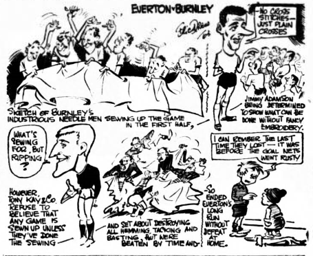 A repetition of these Everton tactics tactics would be the most certain method of guaranteeing their elimination from the European Cup at the first fence, but the lesson, properly digested, has come just in time to ensure that they will not again fall into a trap of their down making. For both wing halves to move up into attack together, as Everton’s did, is fraught with disastrous possibilities and it was so out of character with the normal Everton pattern that it will be accepted as too expensive a luxury to be repeated. Had Parker and Meagan been in complete command of Charlton and Moir they might have got away with it, but such was far from being the case.