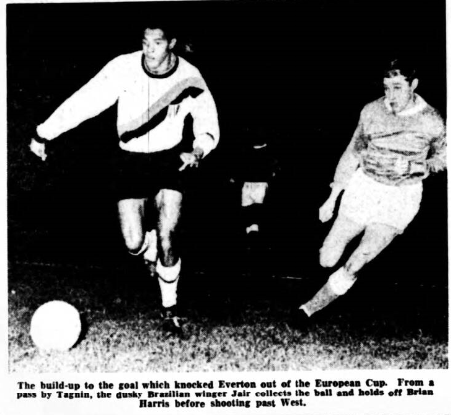 Crash! There go our European Cup hopes this season, but it is same consolation to know that we lost to one of the best sides in Europe and I think the whole Everton team learned much from our encounters with Internazional Milan. As I promised last week Everton did not give up without a flight and in my opinion we were worth a draw at least in Milan on Wednesday evening. Having knocked our heads against a defensive wall at Goodison Park we had no option but to try and play the Italians at their own game. Despite playing a defensive game, however, we were able to carve three good openings in the Milan rear-guard during the first half. Unfortunately, we did not score but the fact that we made such clear chances- they were much better than we had done at Goodison -shows that the tactics used were sound. There was a period towards the end of the first half when Milan seemed to become upset because they could not break through our solid defence and they became a little careless. Had we been able to snatch a goal there might have been a different story to tell. As it was a goal by that streak of Brazilian lightning. Jair da Coastal, sealed our fate during the second half. It took all of the wingers fantastic speed to run in at a sharp single and convert the chance, and this was a goal I feel few other footballer would have scored.