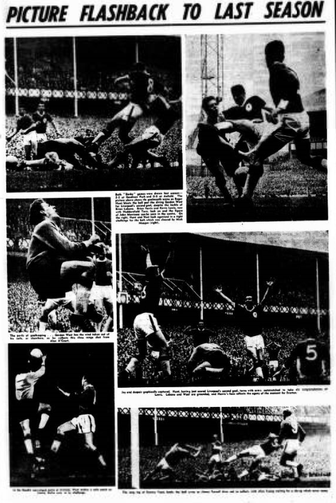 There was an explosive moment when Kay tackled Yeats who had taken the ball far upfield and the referee took both their names, before awarding Everton a free kick for a foul by Yeats. Both players had a tangle together with their legs flying. Vernon tried to volley of ball home from the edge of the penalty area when Morrissey put the ball across to him but his direction was poor and the ball went yards off target. Lawrence did well to come out and save from a header by Temple, which was heading in Vernon’s direction before the goalkeeper dived down and intercepted. A brilliant pass by Harris to Scott opened the Liverpool defence and Scott centred first time for Vernon to run in and put the ball only inches wide. All the Liverpool forwards came back to help the defence in the exciting closing minutes with Liverpool hanging on the lead which they had deserved on the general run of play. Final; Liverpool 2, Everton 1. Official attendance 51,973.