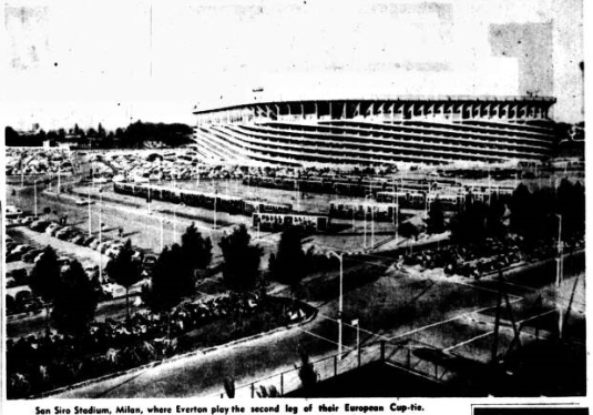 Manager Catterick, who flies back to Liverpool to-day “to spank Everton with the pants down” in the words of his chairman, was more impressed by European champions Milan than by Everton’s European Cup opponents. He said; “The Milan team is well knit and has stars who can really play brilliant soccer. I liked particularly San Mora and Amarido Inter-Milan were clearly inferior on this show, though they have a tight defence.” Trainer Eggleston said “Milan certainly gave Inter-Milan a lesson in craft and tactical moves. Inter-Milan just couldn’t get going as they were too bust buildng up a defensive wall in their own half.” Mr. Moores did an eight hour stint in teeming ram yesterday scouring the Milan countryside for a suitable hotel for Everton’s training headquarters for the European Cup tie on September 24. They settled for a quiet hotel at Monza facing the huge park formerly owned by Italy’s former Royal family. Mr. Moores said; “It is only eight miles from Milan and is very quite and has good facilities nearby for the right sort of training.” Fifty yards from the hotel is a park with an 18-hole golf course, a racecourse and the famous car racetrack.