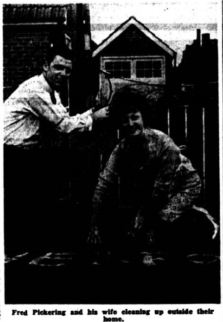 Vandals raided the new home of Fred Pickering, the £80,000 Everton and England centre forward, at 25 Middlewood Road, Town Green. Aughton, near Ormskirk, early yesterday and painted the unoccupied £3,500 semi - detached bungalow, with Liverpool F.C, slogans in red and white. Fred and his wife Margaret, who is 23, live with her parents at Hollin Bridge Street, Blackburn, and are hoping to move into their new home shortly. They were at the bungalow on Saturday, working until about 10 p.m., cleaning up after the builders and painters, in preparation for moving in, and putting up curtains. Fred was besieged by many young admirers and signed dozens of autographs. On Sunday morning a neighbour, Mr. John Mathieson, discovered the slogan's painted all over the bungalow.