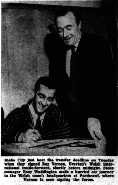 Two Everton players, full back, Ray Wilson and inside forward Roy Vernon, have been recalled to representative soccer. Wilson has been chosen to captain the Football League against the Scottish League at Hampden Park on March 17, while Vernon plays for Wales against Greece in the World Cup second leg at Ninian Park, Cardiff on the same night.