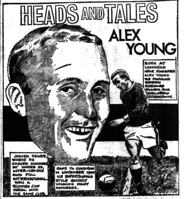 Gabriel tackled and played Douglas out of it, too strongly once in the referee’s view, while those other menaces, by reputation at least, Byrom and McEvoy never had a real chance against a brilliant Labone and a cultured Harris. Occasionally, it looked as though left winger Harrison might pose some trouble for Wright, but the youngster is so fast and tenacious in his recovery, that this threat was soon wiped out. In the second half Ferguson wandered over to the left and there was one moment when he and Wright tangled rather alarmingly. However, a word from the referee quietened it down, although Ferguson a few minutes later came in for a more serious caution when he kicked the ball away after a free kick had been given against his side. Wilson also did all he had to do competently and calmly, while West had the sort of afternoon which clearly indicated the strength, power and command of the men in front of him. What the game did show us again was the wonderful potential of Harvey. There is class in everything he does and pretty much the same can be said of Pickering, who certainly put a dent in the reputation of his former Blackburn colleagues, England. Vernon and Scott also had good matches, the winger using his speed excellently, but Temple just cannot find his shooting form. This, though, cannot be applied only to him because Everton should have had more goals and would have had if there had been a greater sense of urgency among forwards of the shooting need.