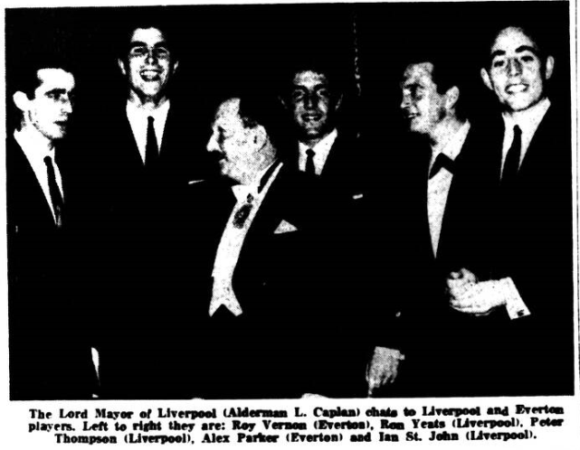 The return of Roy Vernon and Sandy Brown to Everton’s team offsets the disappointment of Derek Temple’s withdrawal for the visit to Arsenal. Even with Pickering leading the line, the snap and threat of Vernon are essential to the attack’s well being. The fact that manager Harry Catterick has restored the Welsh international after an absence of eight matches, without asking him first to prove form and fitness with the reserves, I take as an and cation of his awareness of Everton’s need of Vernon. Whether the former skipper in the absence of match practice, will be able to hit the high notes right away is something of shall know better by this evening, but his inclusion is a risk well worth taking.