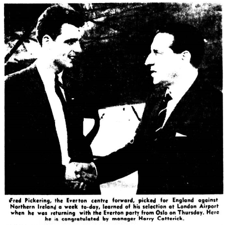Manager Harry Catterick flew back with his chairman, Mr. John Moores, last night immediately after the game. He invariably travels with the team, of course, but as Mrs. Catterick has only just come out of a nursing home after a serious operation he was anxious to get home as soon as possible. Mr. Moores had flown a from Woodvale to Nottingham, and Mr. Catterick was able to join him on the return trip, touching down only a couple of miles from his Birkdale home almost before the Everton party had left the ground for their hotel at Bakewell.