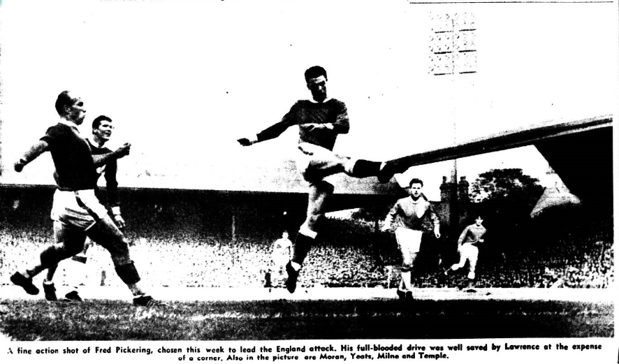 True, the Everton defence did look shaky in the second half yet taking the match overall one must pay tribute to the wholehearted team endeavour linked with some brilliant ball play by Pickering and the swerve and ability of wingers Scott and Morrissey. Pickering got two good goals in the first half and there were suggestions that he also scored the first in 26 minutes, but I think Scott's shot had crossed the line before the centre forward added his touch. However, apart from his goals Pickering looked the class player. He was always working the ball, always ready to move to the wings, and for me looks a much more complete and mature player than he did when he first arrived at Goodison Park. Scott and Morrissey also had a fine match. They had speed and directness and young Harvey, as he had been at Anfield a week before was non-stop all the time. He looked a very good prospect especially in the first half and his passing had a part in at least two of the goals. Temple was not as potent as he can be but I recall one cracking shot against the foot of the post which beat Birmingham goalkeeper Schofield completely. Defensively Everton had to cope with some early Birmingham flourish led by left winger Auld. They did it so well that at half time it was the most difficult thing inthe world to visualize that they could ever lose their grip. But lose it they did for that spell in the second half. Rankin might have been at fault with Birmingham's second goal because thee low cross from Hellawell seemed to pass behind him but apart from this he did well. Stevens also, I thought, illustrated what a great worker he is.