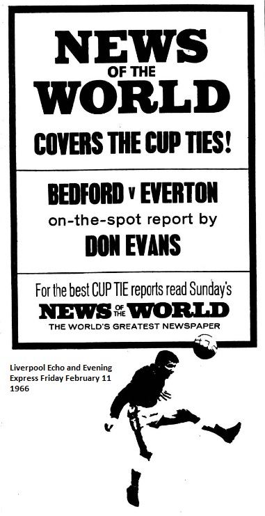 Everton players golfed at Llandudno to-day where they have been having a few days break from routine, Manager Harry Catterick did not accompany his players. Bedford, whom they meet in the Cup, have erected a temporary stand capable of seating an extra 500. This will make the limited attendance 18,500.
