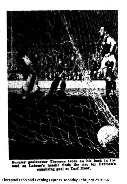 From the moment, Everton took control and played their best football of the season. They had what looked a legitimate goal by Pickering disallowed for offside on the action of a linesman. Pickering was only a yard or so out when he turned the ball over the line after Temple had mishit a centre by Scott. But the linesman did not see winger Morgan standing on the goal-line only a few yards from the corner flag and with Merrington also standing by the far post, Pickering could not have been offside. Everton did not allow this to upset them, but continued with calm, methodical football, and impressive power, to dominate. They fully deserved the equaliser from a great header by Labone from Young winning the match in free kick and it took a magnificent save by his cousin, Thomson to prevent Young winning the match in the last minute after a superb run and shot. With a little luck, Everton could have won this game, but they were very satisfied with the point after a hard, gruelling match on a glue-pot of a pitch. Conditions were such that mistakes in ball control could be excused, but Burnley made far more than Everton. The basic of Everton’s general success was a very sound defence. West did not have a great deal to do, but pulled off one of the saves of the year from a full-blooded volley by Morgan just after half-time.