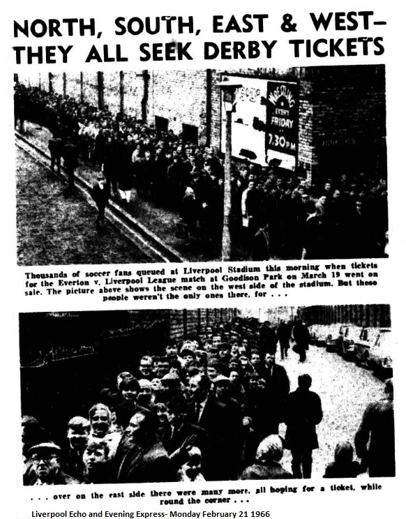 Not everybody was happy at the decision to sell “Derby” match tickets yesterday morning. E.T. Atkins, from Shrewsbury Road, Birkenhead, has this fusillade; “Yet again Everton have sold tickets when men are at work and children at school. Has the club no conscience about its fans? There is no justification for the stupidity. “Tickets could be sold, unannounced, at League games and Reserve games, prior to the big game. If Everton and Liverpool really cared about their supporters they could, and would, have devised a better way of selling tickets. “The police can form people into orderly queues quite easily as I have seen many times; so why were tickets sold on Monday and not on Saturday or Sunday?” One reason why Sunday is “out” is undoubtedly because householders near the ground protest against disturbance by thousands of fans, some of whom no doubt would camp out all night.