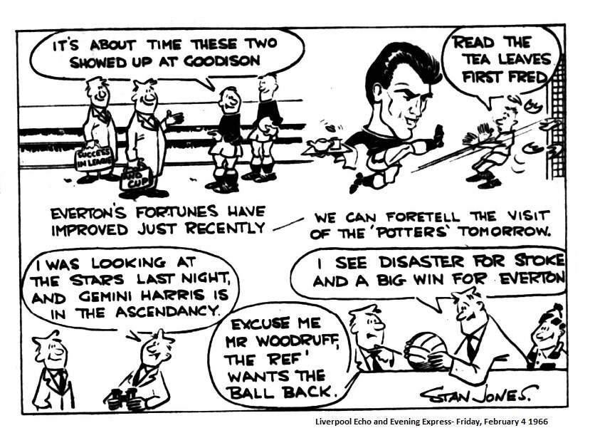 How good are they? Stoke could well be the ideal trial horse to provide an accurate answer to the query. They have taken more points from away games than they have lost, which is not an unsatisfactory testimonial. Everybody is suddenly sitting up and taking notice at the mention of Everton and even to suggest the possibility of a successful Cup run is an indication of renewed respect for them. Five goals scored without reply in successive outings can only have worked wonders with the team’s confidence in their own possibilities. The remarkable feature is that apart from the substitution of Temple at outside left for Morrissey, thi9s is the same team which plunged to their darkest hour in that 5-0 thrashing by Liverpool. A reverse which triggered off a whole series of set-backs. Here is the opportunity for the players to prove that not only are they the club’s best eleven but that they are capable of whipping out memories of the unhappy past.