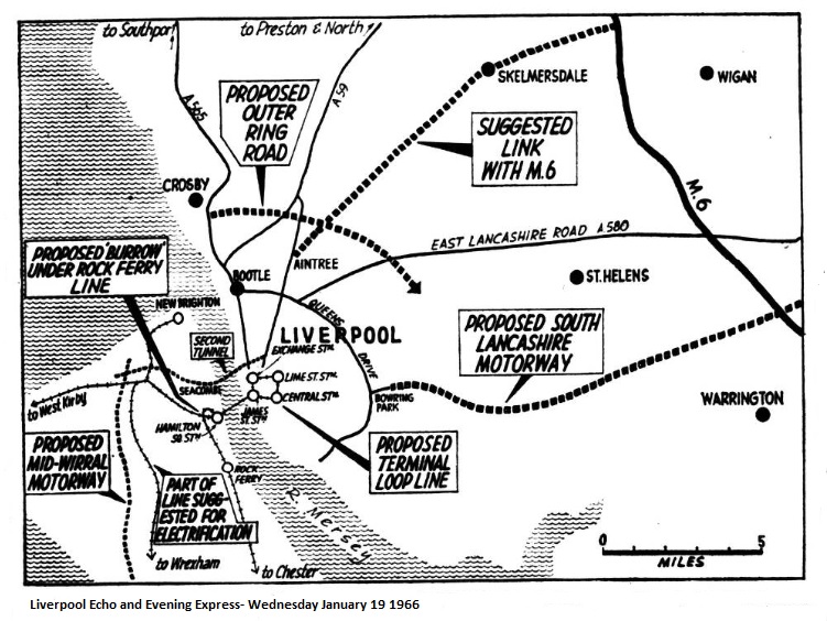 One interesting suggestion, and one which could well be adopted in other parts of the city as quickly as possible, is that recreational open space should be supplemented by the dual use of school playing areas. Under the plan, the maze of narrow streets which make up present day Toxteth would be replaced by clearly defined district distributor, primary, local distributor and secondary roads. Principal roads would be the rehabilitated Park Road and the Middle North-South Primary linking the north end of the city with the Third Mersey Crossing, which, for the purposes of the report is conceived as being a little north of Dingle. The location of this crossing would materially affect road developments within the district, but this must remain uncertain until the results of the pending Merseyside Land- Use Transportation Survey in three years' time. Another important roadway would be the Aigburth Primary which would link the Inner Motorway, the third river crossing, the Middle North-South Primary and Aigburth Road. This would follow a route through the south docks and the southern residential parts of Toxteth. Then there would be the South Lancashire Primary which would link the city with the M6 Motorway, and which would form the northern boundary of the Toxteth district.