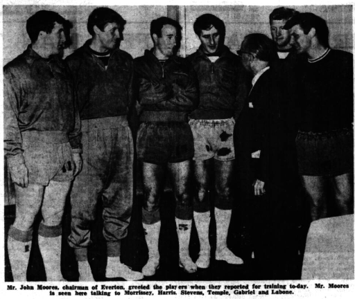 Mr. Moores pointed out that at present the club were in a very happy state financially and the modernisation of the club grounds both at Goodison Park and Bellefield-the training ground-is near completion. “in view of this I think that now would be a reasonable time to make a change I will be happy to act as a director of the club. I will give all the assistance I can, because Everton have been very good to me indeed,” he said. Mr. Moores concluded by thanking his fellow directors for their support and said he was very indebted to Mr. Harry Catterick the club’s manager, and Mr. W. Dickinson, the secretary for the good work they had done. Mr. E. Holland Hughes, a director and chairman of the club’s finance committee, described Mr. Moore’s announcement as “very grievous news.” “The loss which the club will sustain when Mr. Moores’ announcement as “very grievous news.” “The loss which the club will sustain when Mr. Moores vacates the chair will be immeasurable,” he said.