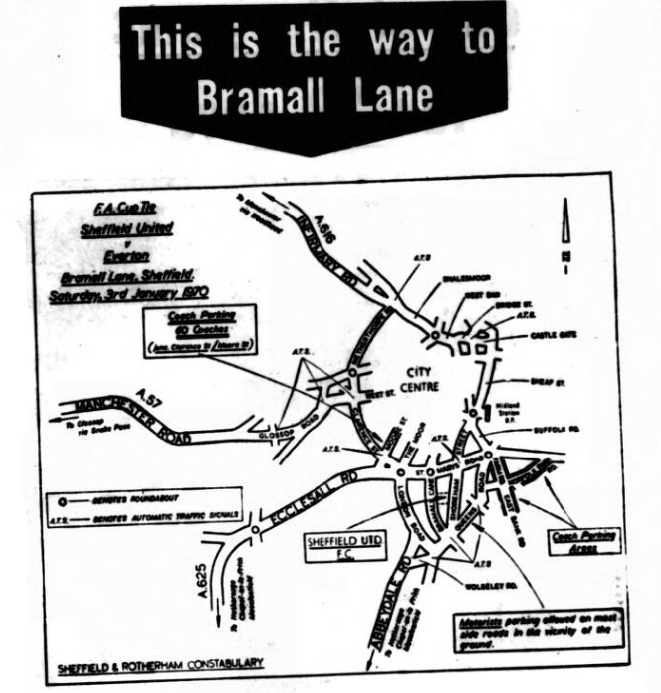 Everton supporters travelling by road to Sheffield for the FA. Cup third round clash against Sheffield United were to-day advised of routes and parking areas by the Sheffield and Rotherham Constabulary.