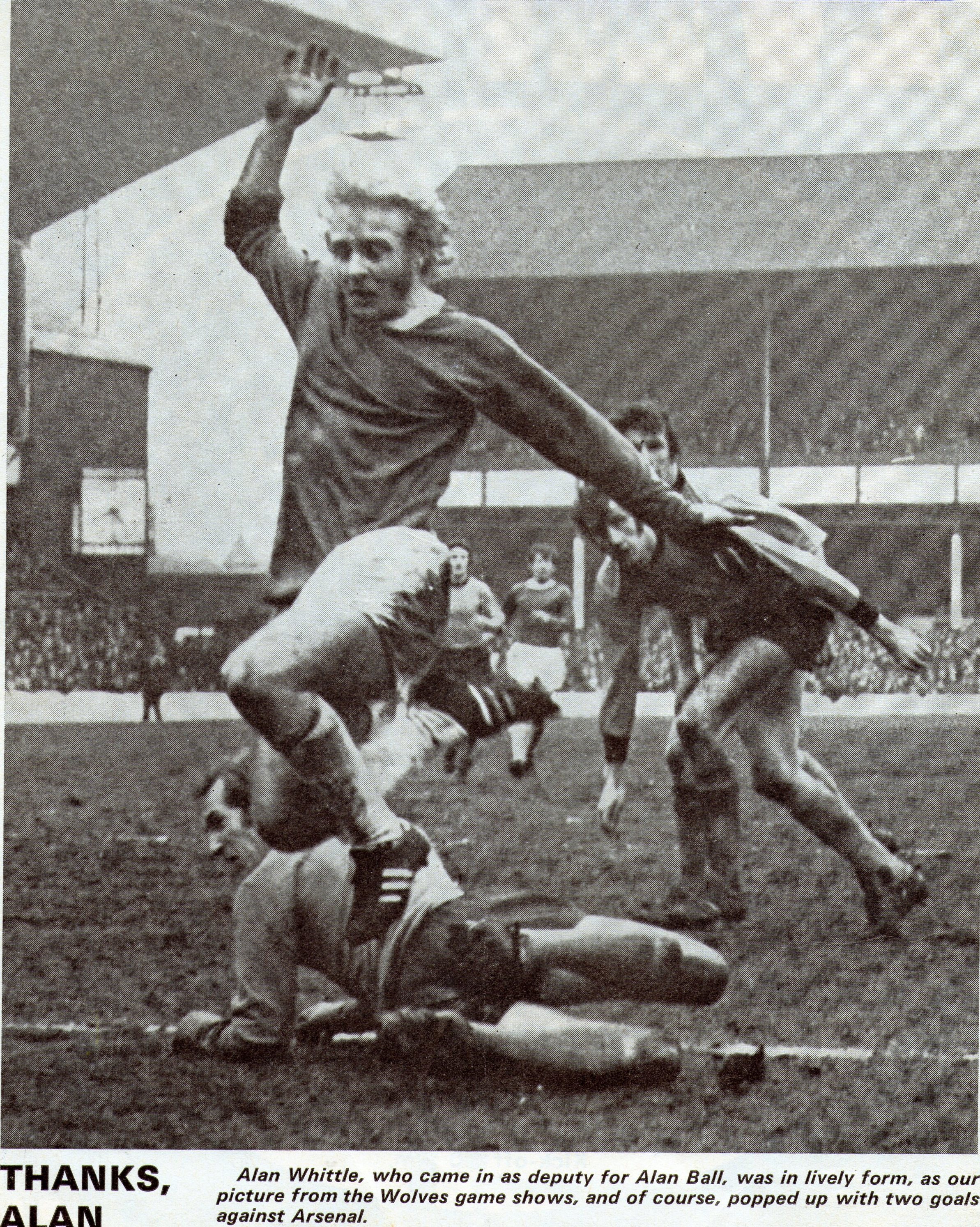 It was a mistake not to play Whittle at Southampton. Playing Brown, a defender, does not allow much spirit of adventure. Whittle has proved he is good enough-J. Phillips, Old Roan Inn, Aintree.