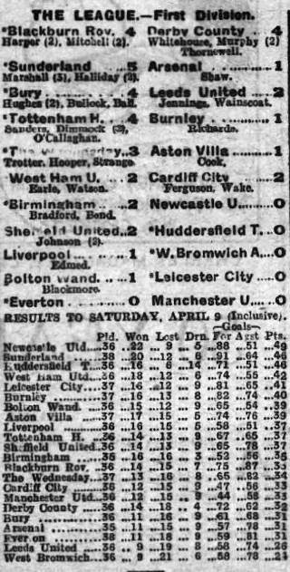 Derby County; Olney; Carr, Crilly; McLaverty, Thoms, Storer; Thornwell, Gill, Bedford, Whitehouse, Murphy. Everton; Taylor; Cresswell, O’Donnell; Kelly, Hart, Virr; Critchley, Irvine, Forshaw, Weldon, Troup. Referee; R. J. Kelso, of Sheffield.