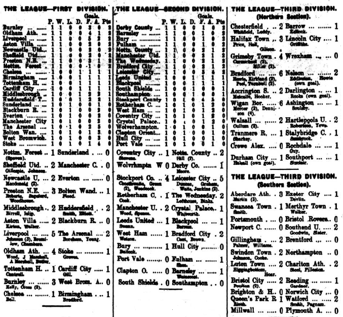 You have to go away from home to get the news of home and away. Well, it was a letter from abroad (Montreal) that brought news of Chedgzoy, I published the letter on Saturday, and can now add that the letter and the player may have come to England on the same boat! Everton are reputed to have gone to Ireland for Gough, the Branston goalkeeper, but there is no truth in this statement. Gough is an Irish junior international, a big fellow and youthful, but he does not follow the Scotts, Lacey, Harris and Houston in leaving Ireland for Everton. Certainly Goodison Park looks to the on-coming season with a brighter eye than lasts season, when the men went on in a spirit that suggested they did not believe they could beat anyone. There is a new feeling in the players and board-rooms and the effect will be seen are many weeks have gone by. I am not suggesting by this that Everton have no faults. Only the playing of the games can show this and tonight we shall be able to size up some of the chances as at 7 o’clock. Referee Cahill will line up the following rivals elevens;- Blues; Fern; Downs, Livingstone; Peacock, Brewster, Hart; Jones, Fazackerley, Irvine, Williams, Harrison. Whites; Salt; Raitt, Weller; Brown, Fleetwood, Reid; Parry, Miller, Forbes, Jackson, Alford.