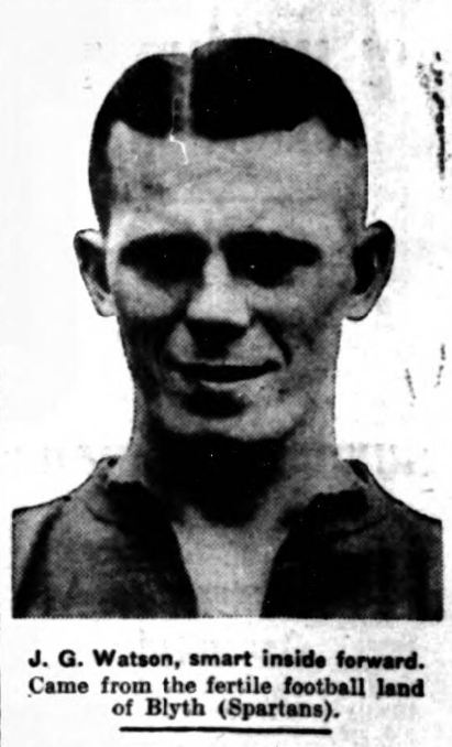 The White almost drew level in the next minute, Watson breaking always with a glorious left-footer, which Sagar turned over the top. Balmer continued a danger, and of his close footwork was exceptional neat. On two occasions only quick thinking prevented the amateur from shaking the net. Coggins pulled down a sharp one from Geldard. Half-time Blues 1 Whites 0.