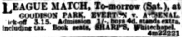 A prominent football director in Liverpool said yesterday the city of Liverpool was different from most other cities in that from the start both the Everton and Liverpool clubs had aimed at covered accommodation for the popular side, that is the cheaper portion.  “Liverpool’s ground at Anfield, for instance,” he continued, “holds 40,000 people, all under cover, and practically all of these pay a shilling.  This has become possible purely through the influence of officials who have taken great care of the money.  “Throughout the war, when there was what might be termed an imitation league where no wages were allowed, Liverpool provided well for the entertainment of Tommies from active service or in training.  Everton and Liverpool claim to have the most compact grounds in the country, and they are rich clubs.  It is a fact that Everton has the reputation of being the richest club in the world, and yet they have a huge overdraft at the bank.”  “Taking it by and large,” said another director, “there is no cheaper and fine entertainment in the world than football, which provides an hour and a half under cover for 1s., and a good comfortable view of a really fine game.  Even in the case of Everton and Liverpool the assessments and taxes are enormous, and they have to exercise care over the expenditure of any even reasonably big fee.  “Clubs in general could not tolerate for one moment any reduction of prices.”