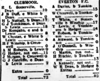 EVERTON FOOTBALLERS VERSUS CLUBMOOR CRICKETERS
