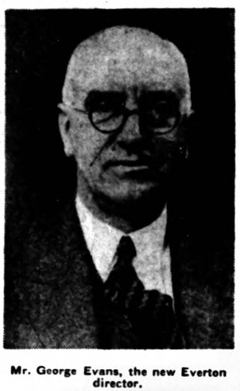 George Evans co-opted to the Board of Directors. The Club's new director is Liverpool's public Assistance Clark. He has been a keen follower of football for many years, and his ties has always been with the club since he attended the first Derby match ever played between Everton and Liverpool. That was at Goodison Park in 1894. His boyhood days he has been an Evertonian, and of recent years has been prominent shareholder. He has had practically football experiencing, played for 11 years in the Junior Leagues with St. Cleopa's and Mission.