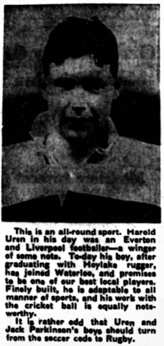 The game was a trial, needless to say, and on that score alone, cannot be treated with the seriousness of any game of the contesting character. However, it showed what power the reserve team has. Stevens, of New Brighton, show remarkable speed and much judgement, and got three goals, which in itself is a performance against the first team defence. Clarke was not playing owing to a slight injury through cricket and McClure took his place. The other outstanding man of the winning side was McGourty, who captured the public by his canny play and by his skilled movements. Leyfield, the young "A" team player, at outside left has grown a good deal in football skill and physique, and after dean had made perfect goals and missed one or two of the simplest the game took its surprise turn and caused the crowd to indulge in the free praise of the youngsters. Griffiths, after a moderate first half, broke out into a shooting mood, and with White formed a dangerous wing. Coggins kept a good goal, and is plainly in better health than a year ago. On the defeated side there was much to interest, and please early on, and after that the deluge. Goals were scored by Stein, Dean (2), Critchley, Stevens (3), McGourty, Griffiths (2) and White. Result Whites 7, Blues 4.