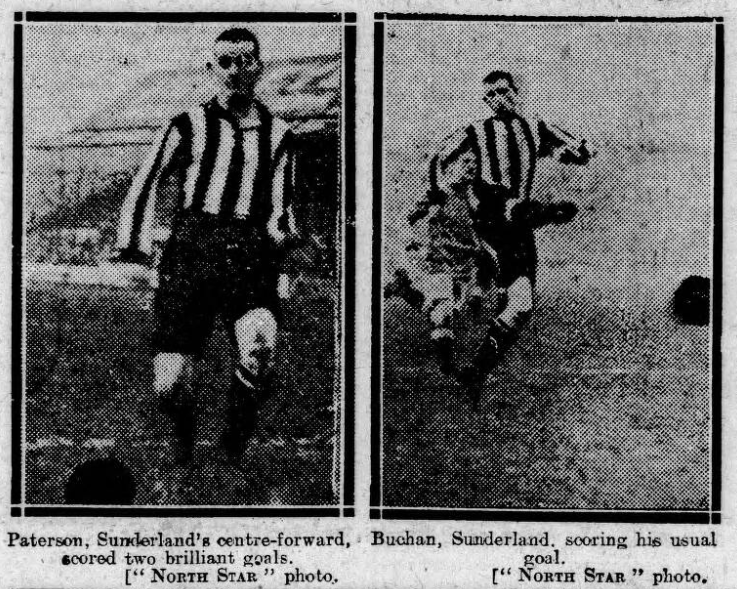 Buchan and Cresswell had their day out, and the fact that Grenyer was not of the standard of his colleague, Hart, gave Buchan unlimited scope. He was here, there, and everywhere, and his deftness and feinting tactics completely misled his opponents. White the scorer of only one goal, he was indirectly responsible for the crop that fell to his side. Cresswell played as he has never played before, and as a tackler was not once beaten during the game. He help Reid and Williams in a vice-like grip, and frequently brought his side out of dangerous situations. When the game starred Sunderland appeared to treat Everton rather cavalierly, but a goal by Chadwick, as the result of a spasmodic effort-the ball entering the net from 20 yards range- brought them to their senses. Thereafter it was a case of Sunderland attack versus Everton defence until the last five minutes of the game, when the Lancastrians made a strenuous but unsuccessful attempt to again beat Robson. The first goal for Sunderland, which was an equalising goal, was scored seven minutes from the interval, after the Wearsiders had hammered at the Everton goal for fully 20 minutes during which time Harland, Raitt and McDonald had beaten out dozens of shots. It was scored by Paterson, who stood unattended while Buchan misled five opponents who flocked round him. The ball was passed to Paterson, and it required little effort to land it into the net. Three minutes later, after two shots by Buchan and a third by Ellis had been put out by Harland at close range, the Sunderland leader of the attack received a centre from Donaldson, and diverted the course of the ball into the net. The other goal came in the second half, when Buchan ran through to improve on Donaldson’s centre. This was Buchan’s 14th goal of the season, and the two scored by Paterson brought that player’s total to ten. Sunderland; Robson; Cresswell, England; Ferguson, parker, Poole; Donaldson, Buchan, Paterson, Hawes, Ellis. Everton; Harland; Raitt, McDonald; Hart (Captain), Fleetwood, Grenyer; Chedgzoy, Peacock, Chadwick, Williams, Reid.