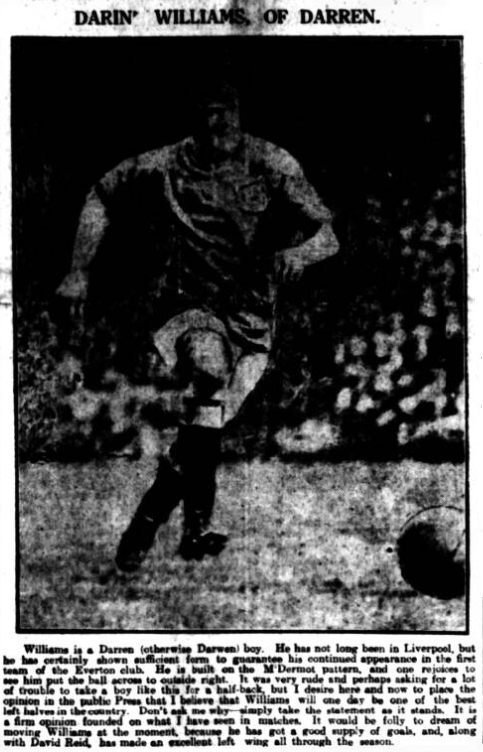 I learn from Cardiff that on Saturday Everton were over at Cardiff City’s ground trying to sign Len Davies, who was an international in name and class last season, yet in this season has failed to get anywhere near his club form. Why should Len Davies lose his place? Physically he is not a strong-built man, but he is wiry and has not lost an ounce of his energy. The club and some of their supporters fear that criticism levelled against the young fellow has led him to disbelief in himself. At any rate the club are not hasty to part with him, and Everton had “No” as answer when at the week end they tried to get pen and ink flowing.