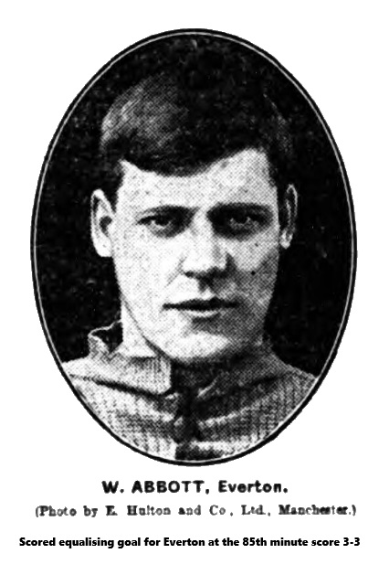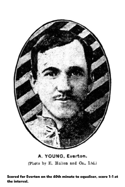 Everton.- Scott, goal; W. Balmer and Hannan, backs; Taylor, Booth (Captain), and Black, half-backs; Birnie, Young, Abbott, McLoughlin, and Hardman, forwards.