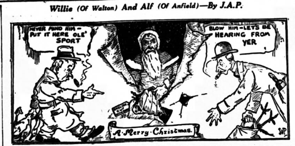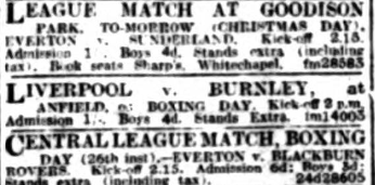 Played on Christmas Day. Eight thousand spectators witnessed a hard-fought encounter at Blackpool. Everton were the better-balanced and more polished side, but Blackpool were first to score. Crook netting after forty minutes, Kennedy equalised from a free kick four minutes later . Everton: - Maher, goal, Common and Kennedy (captain), backs, Kelly Dixon, and Curr half-backs, Critchley Lewis, French, Weldon and Stein forwards.
