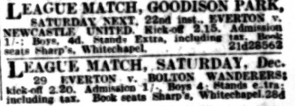 Everton are at home again to-morrow, and, having rested while the Bolton Wanderers were playing, the home side should be the stronger and better. Naturally the display against Sunderland, at home on Christmas Day, was not satisfying and changes were expected. Troup could not play, and thus the side lost its most consistent player for some seasons. Stein is known as a big, striding and capable footballer, so that the left-wing’s extremity does not bother one very much, the inner berths are the more troublesome, unless they produce the form they offered against Newcastle last Saturday. Let us hope they are in a good mood tomorrow, for Bolton Wanderers stay the course, and have a useful defence and a forward line that can be as good as Everton’s, when they are in the mood. They have brought (and paid for!) Cook as Vizard’s deputy, and this wee fellow is going to be a great treat for the Everton spectators-he is a dandy winger, in spite of his lack of inches. The side will look curious without David Jack, but the evidence of McClelland and Gibson will be such that it becomes necessary for the home defence to stick manfully to their task. Cresswell by the way, has not been feeling too well lately. Let us hope he’s ready for this game, and the important games, of the near future- Portsmouth, and Chelsea in particular. Everton (?); Davies; Cresswell, O’Donnell; White, Hart, Virr; Ritchie, Dunn, Dean, Martin, Stein.