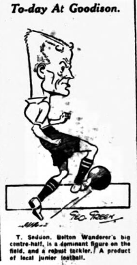 Stein did well, and Critchley, too, had his joyous time, especially in the second half, but he was helped by Finney, who seemed to take matters too easy. He is a beautiful placer of a ball, but his coolness will let him down one of these days. I saw it prove his undoing in a sensational Cup-tie some seasons ago. Howarth had a good first half, and Seddon and Nuttall were good half-backs, but none did better in the middle than Virr, who was in great form. Once the Everton attack found that goals could be scored they played well together, but of course, the palm must go to Dean or his three goals. He got a lot of assistance from Dunn and Martin. I liked the way Martin nursed Stein, and Dun gave Critchley invaluable aid. Of Davies I have told you, but I must say a word about O’Donnell and Cresswell, who had to hear the full fury of the Wanderers skill in the early part of the game and it was their bold front and fearlessness which made victory possible.