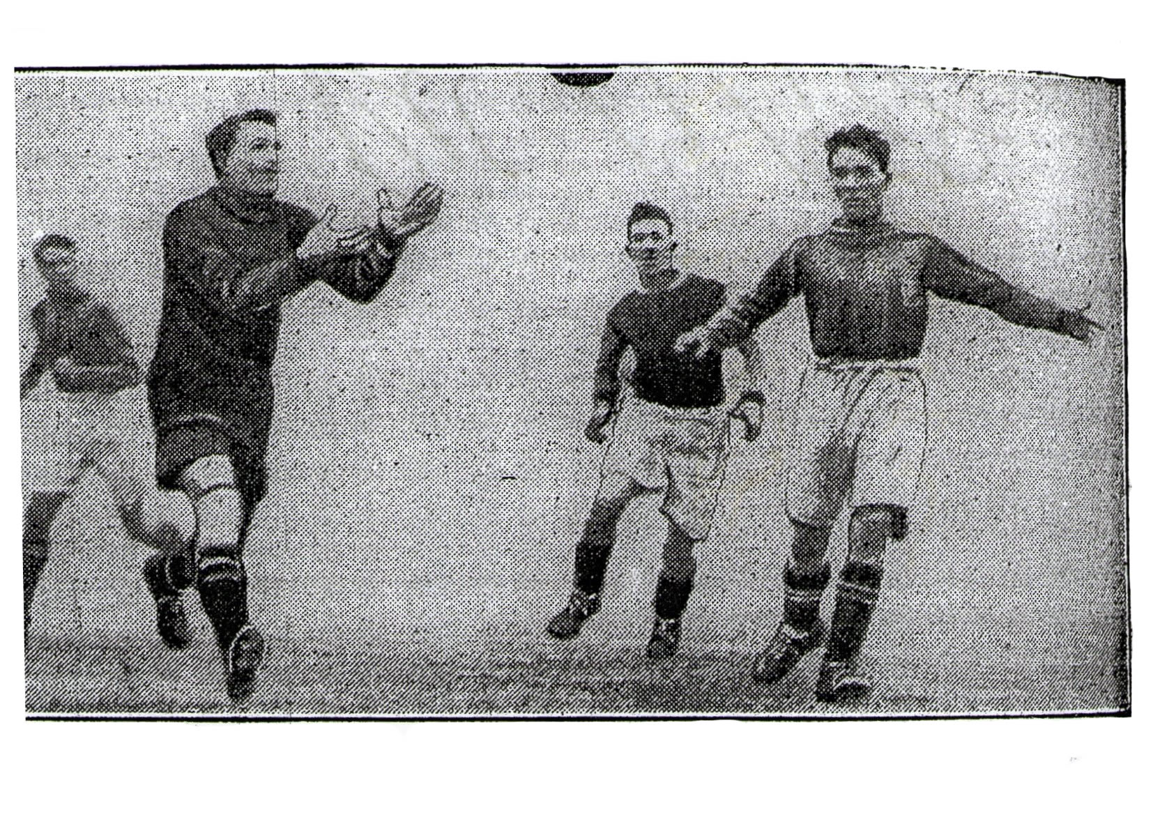 There was plenty of excellent preconceived football to be seen, and this, coupled with the fact that thrills followed each other in quick succession, made for an encounter drawing very near the 100 per cent, mark. It is best in the circumstances, to draw a veil over the display of the Blues in the early period, for it was then that the Wanderers called the tune, and it was a good one. Cook, their new Scottish outside left, combined with Gibson to make the best wing on view, and there is no doubt that he will prove a potent force in English football. Small, but as agile as a cat, he varies his methods of beating a man with remarkable ingenuity, and his twinkling feet and clever crossing won for him the plaudits of all onlookers. His success, however, contributed to the fact that the Wanderers obtained no goals, for they persisted in feeding him so much that the Everton defeders knew just what was going to happen. Everton did this when they were at their best, Critchley and Stein seeing the ball with equal frequency, so that raids were continually emanating from both sides of the field –and the Wanderers were kept guessing the whole time. Dean, played magnificently, for let alone his goals, he kept his line going smoothly in open order, and the precise manner in which his distributed his passes was wonderful. Stein and Critchley, the two reserve wingers introduced, exemplified the strength of the Goodison second string, and they not err once after the interval. Stein is to be congratulated on his initial first team appearance, for he showed that he has speed, skill, and above all heart. Critchley has never finished his work so cleanly as he did in the second moiety.