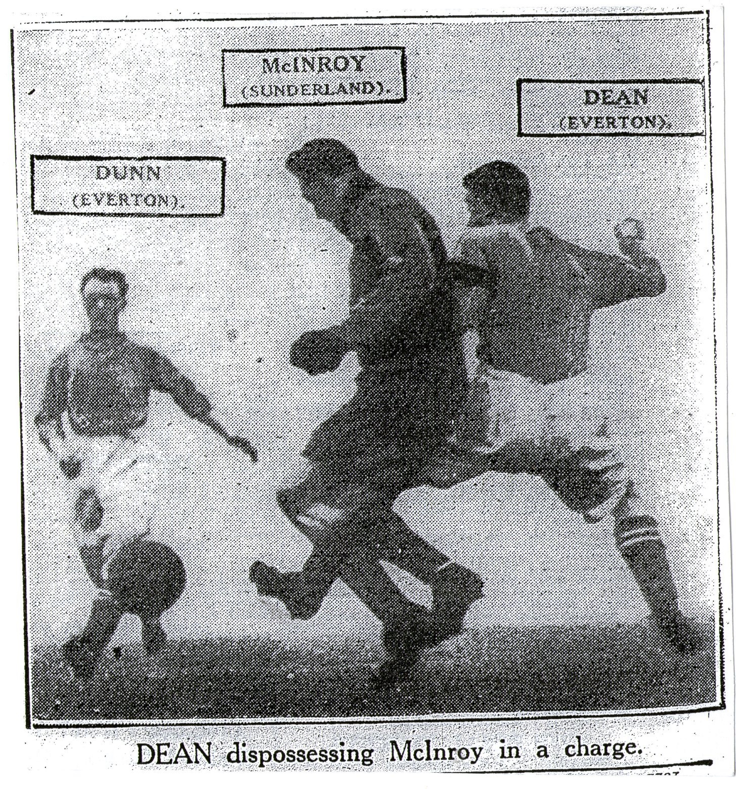 Again ill-luck ran their way when Dunn was twice obviously fouled in the penalty area, but the referee refused to allow the claims. He had seen nothing but was cute enough to notice that Mclean centred from behind the line when his cross was deflected into the net by Davies. The Everton halves were not up to standard, with the exception of Virr, who played gloriously all through. While was deficient in his feeling, and Hart took a little time to settled down. However, he was all right later. O'Donnell was the best back on the field. Davies kept goal brilliantly while Dean, though always shadowed by four men, did grandly on none too good material. It is true that he a shot over from the one real chance the Blues had, but he worked harder than any one else against overwhelming adds. Dunn could not "kill" the ball as well as usual, and Martin suffered because he had no partner for the most part Ritchie was good until he received the knock-out. Sunderland surely must possess two of the cleverest inside forwards in the land in McInally and McKay, but their shooting was very poor. Halliday tried desperately hard to obtained a goal, but he was well watched, and the backs gave nothing away, Clunas was the pick of the intermediates, but Allan did well in a rugged way. Clunas, by the way hit the post from a free kick in the first half. Teams: - Everton: - Davies, goal, Cresswell (captain), and O'Donnell, backs, White, Hart and Virr, half-backs, Ritchie, Dunn, Dean, Martin, and Troup, forwards. Sunderland: - McInroy, goal, Oakley and England, backs, Clunas, Allan, and Andrews, half-backs, Robinson, McKay, Halliday, McInally, and McLean, forwards.