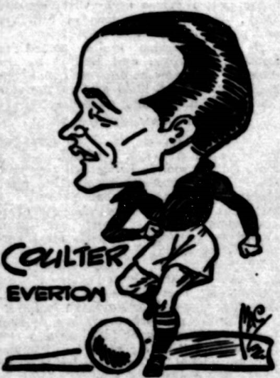Sagar flung himself back to effect a wonderful save. There were storming attacks by the Boro' but Everton defended desperately, and also survived Baxter's free kick on the edge of the area. The ‘Boro' fought like terriers, and after 34 minutes Coleman equalised. Williams had conceded a corner and this was well placed by his namesake, Coleman, standing by the far post, headed in over Sagar. Everton had not been good in defence, and needed plenty of cover. Even Dean came back to help. The Everton half-backs could rarely have cleared so poorly for weeks. Gee was never in touch and Thomson was particularly slow. Coulter and Geldard dropped across useful centres, but the only outcome was a shot from Cunliffe, which travlled over. It was a case of Everton's for-Boro'. Fenton shot inches over the bar, and Coulter and Gee were given a word of advice by the referee. Dean just missed a flying centre from Coulter.