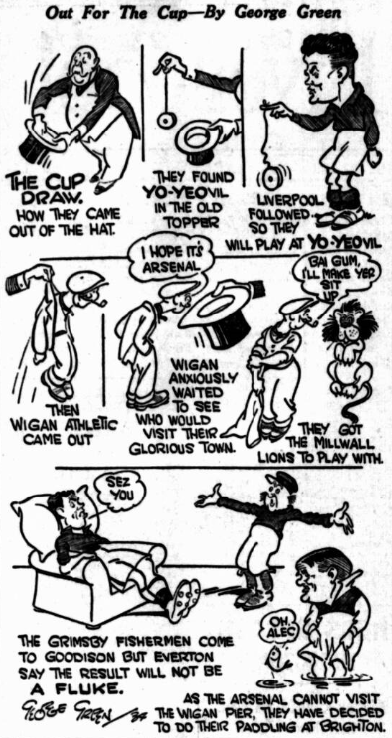 Cook and Williams were rousing with-out inspiring the rest of the eleven. Camsell got his side’s third goal with a grand shot, after Williams and Warren, the extreme wingers, had done the spadework. Geldard did not have a pass for twenty minutes. Williams, on the other hand, was a thorn in the side of Thomson and a great little worker. Britton centred from the corner flag, and Dean headed inches over. Cunliffe missed a goal when almost under the bar. It was Everton’s most disappointing display this season. Stuart put through his own goal late on to make the result look better for Everton. Two gifts from home players in one game! Final; Middlesbrough 3, Everton 2.