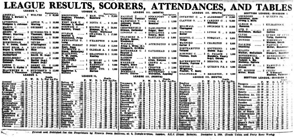 December 8 1934. Liverpool Football Echo.