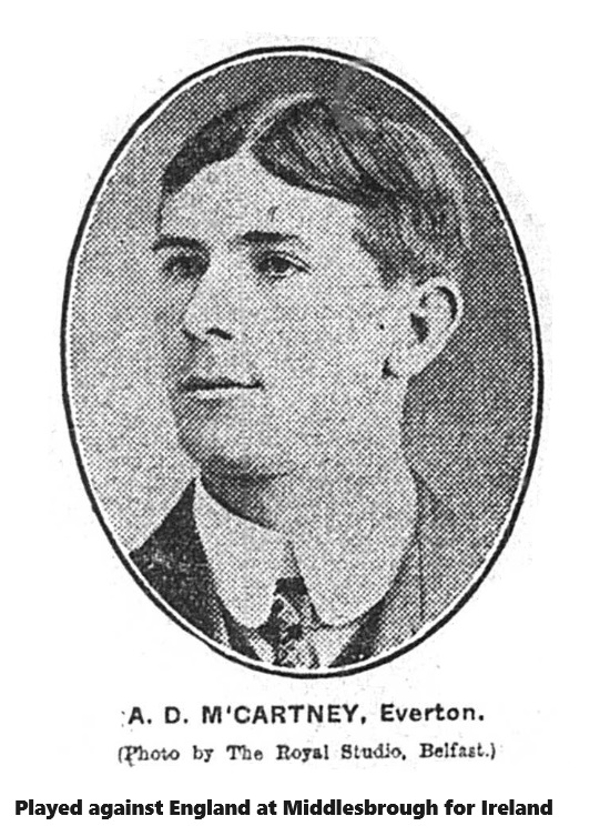Ireland played England, and have yet to defeat in an Association game. On Saturday game at Middlesbrough, they did the next best thing to winning, they managed to draw 1 goal each. Everton players figured in the match, While Balmer and Ex-Evertonian wolstenholmes appeared for England, the sister Isle had the assistance's of Scott, and McCartney, aswell as Sheridan, and Kirwan the ex-Evertonian. More over Sheridan scored for Ireland, while an experienced judge expresses the opinion that Scott was the best man of the field. Yet of the six men named, Balmer is now the only regular member of the Everton League team.