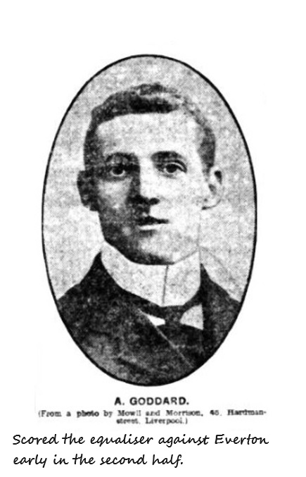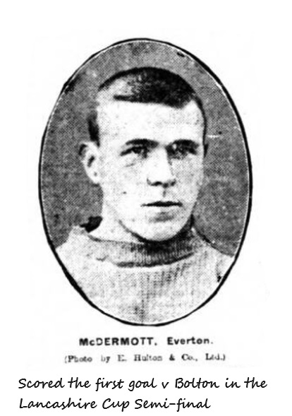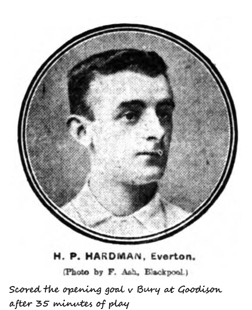 Everton.- L.R. Roose, goal; R. Balmer and Crelley, backs; Makepeace, Taylor (captain), and Abbott, half-backs; Sharp, McDermott, Young, McLoughlin, and H.P. Hardman, forwards. Referee Mr. F. Kirkham, Preston.