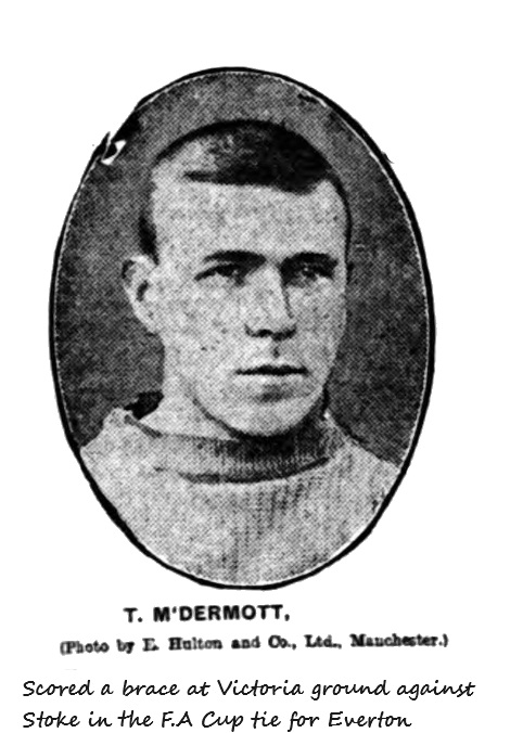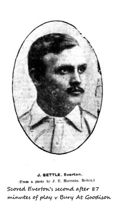 Everton.- Roose, goal; R. Balmer and Crelly, backs; Makepeace, Taylor (captain) and Abbott, half-backs; Sharp, McDermott, Young, Settle, and Hardman, forwards. Referee. J. Lewis.