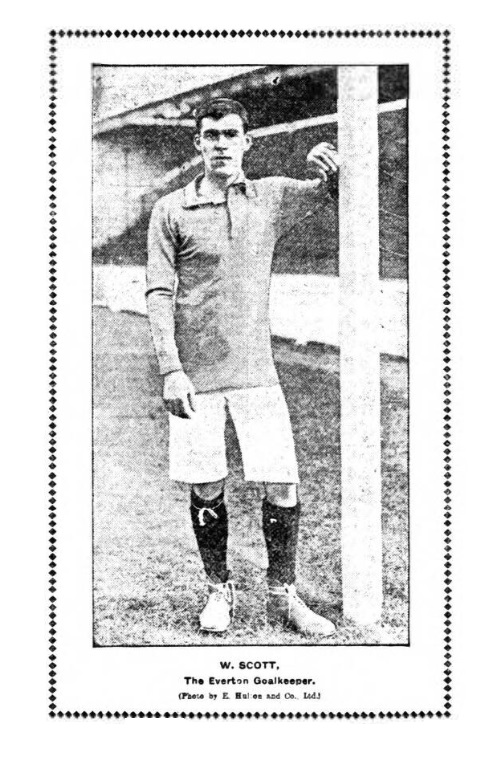A sketch of the Everton team appears on page 3 of this issue. The actual team has not yet been fixed on, and it is a very open matter whether Makepeace will be dropped to allow of Tom Booth’s inclusion, while Sharp may possibly be left out and Rankin included. The team as given on page 3 as follow; Roose; Balmer and Crelly; Booth, Taylor, and Abbott; Sharp, McDermott, Young, Settle, and Hardman.